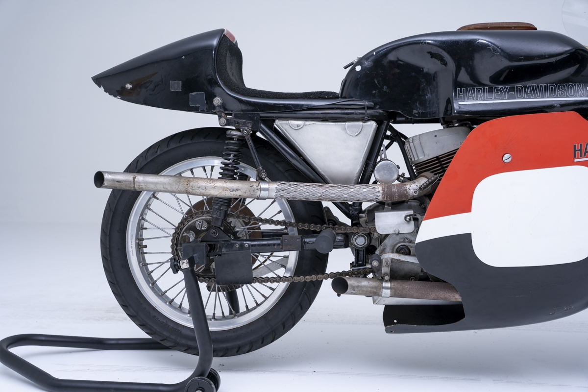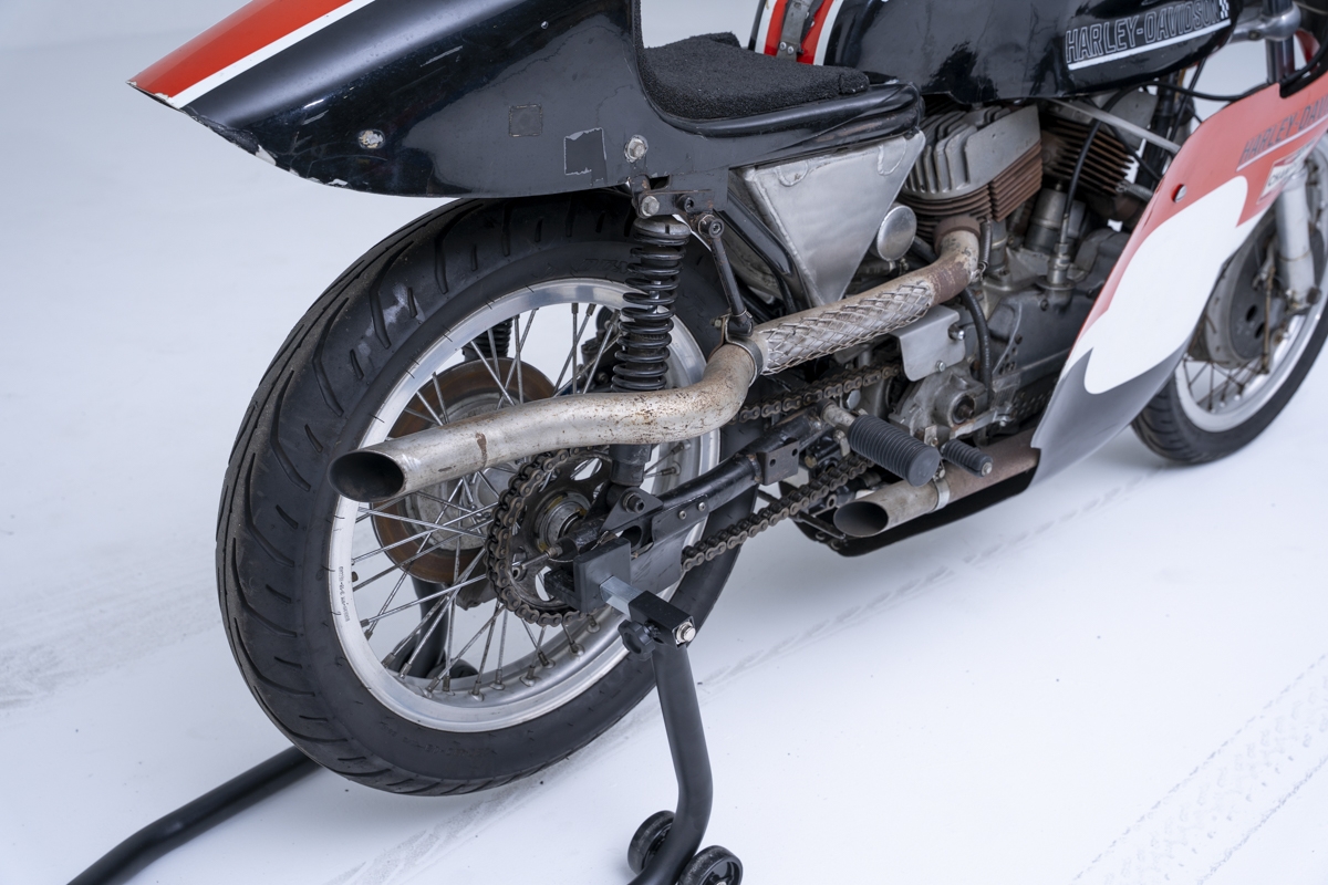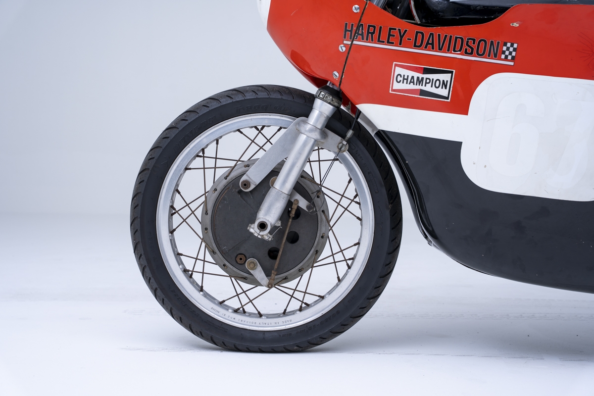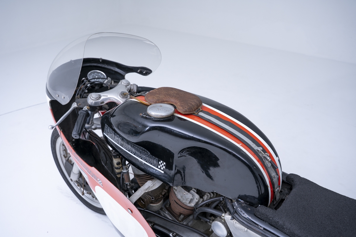 従来のWRシリーズから大きな進化を遂げたKRは、ハンドクラッチ、フットシフト、4速ミッションを採用。さらにリアスイングアームやフロントフォークサスペンションなど、現代のモーターサイクルに通ずる機構を備えていた。その戦闘力は圧倒的で、1955年から1969年の間にデイトナ200で実に12度の優勝を飾り、1956年には全クラス制覇という偉業を達成。文字通り、ハーレーダビッドソンの黄金期を象徴する歴史的モデルとなった。