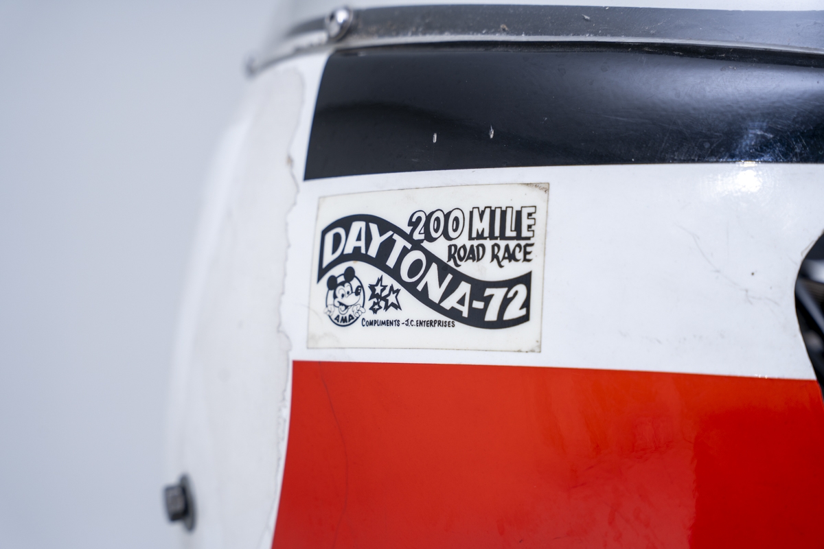現在、エンジンの始動は未確認となっているが、過去には日本国内のクラシックバイクレースへの参戦実績も持つ。ミュージアムピースとしてのコレクション価値は言うまでもないが、適切なメンテナンスを施せば、かつてデイトナ最強を誇った荒々しい鼓動を、再びサーキットで響かせることもできるはずだ。