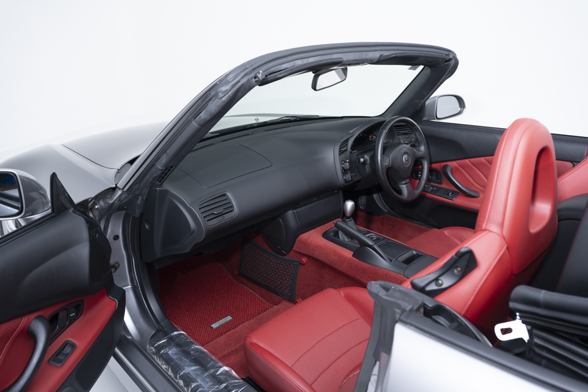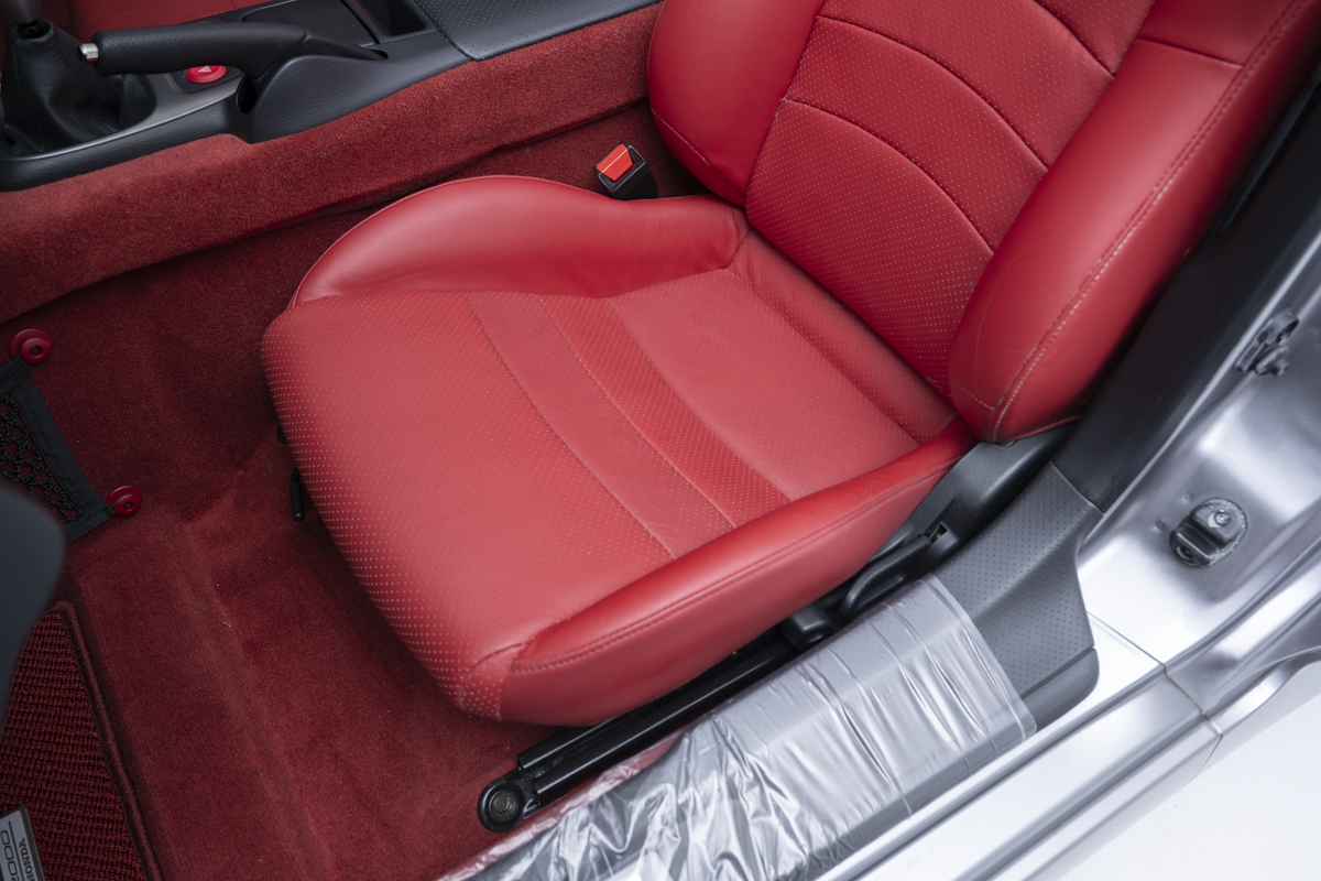 This example is an early, base-grade model from the time of the car’s original release. The exterior is finished in Silverstone Metallic, a restrained and timeless color. Inside it features the factory-optional bright red leather seats, adding a vivid contrast to the exterior. This car was not equipped with the optional navigation system, giving the dashboard a clean and uncluttered layout that highlights the S2000’s original driver-focused design, centered on simplicity and function.