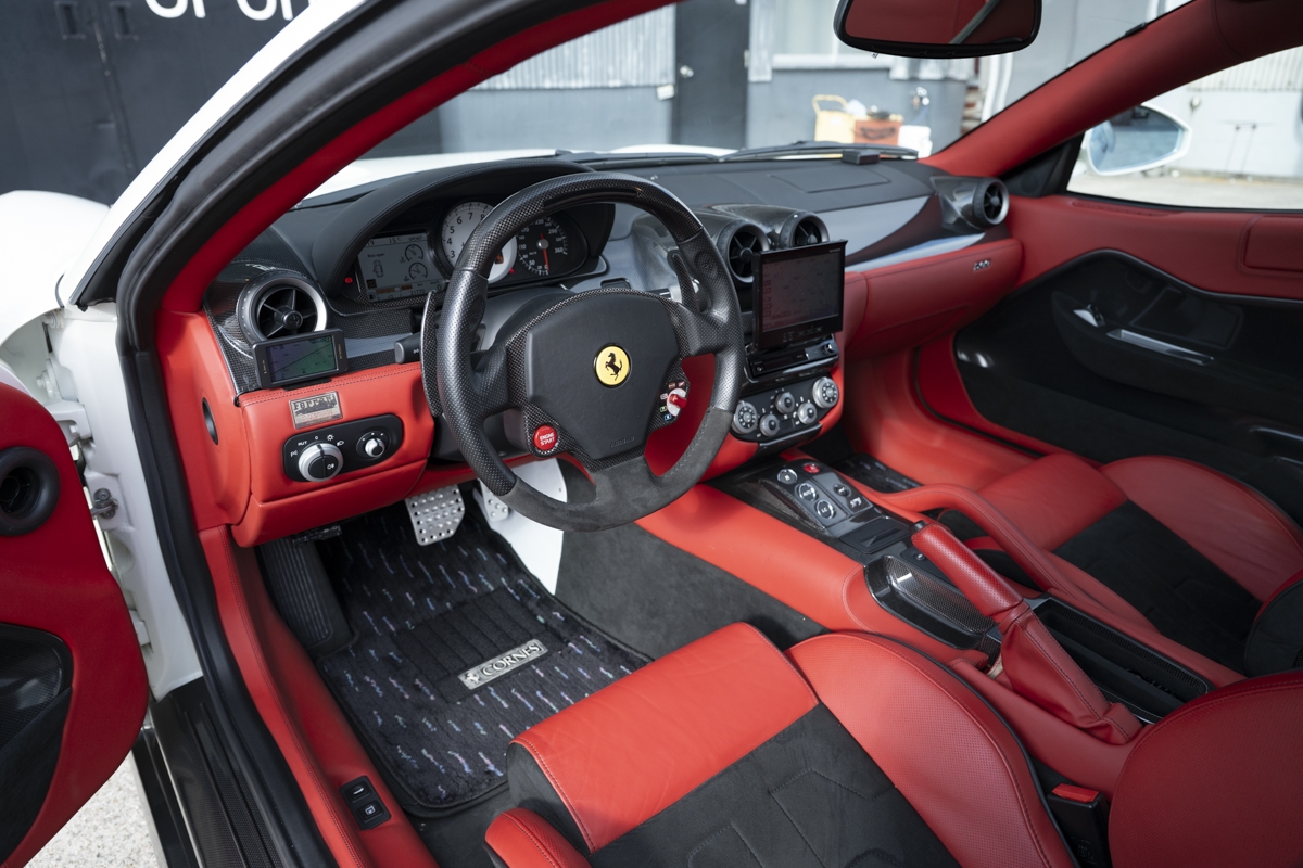 ディーラーオプションとしても販売され、それまでの599オーナーもHGTEパッケージの恩恵を受けることができた。足回りはManettinoの設定に対応した磁性体コントロールのセミアクティブショックアブソーバーを採用し、スプリングレートは前16%、リア10%高め、リアスタビライザーも大径化された。トレッドも前10mm、リア5mm拡大しリアのディフューザー含め、内外装にさらに多くのカーボンパーツを使用、“F1 スーパーファスト”の専用プログラムや、エンジンコンピューター、エキゾーストも専用のものが用意された。