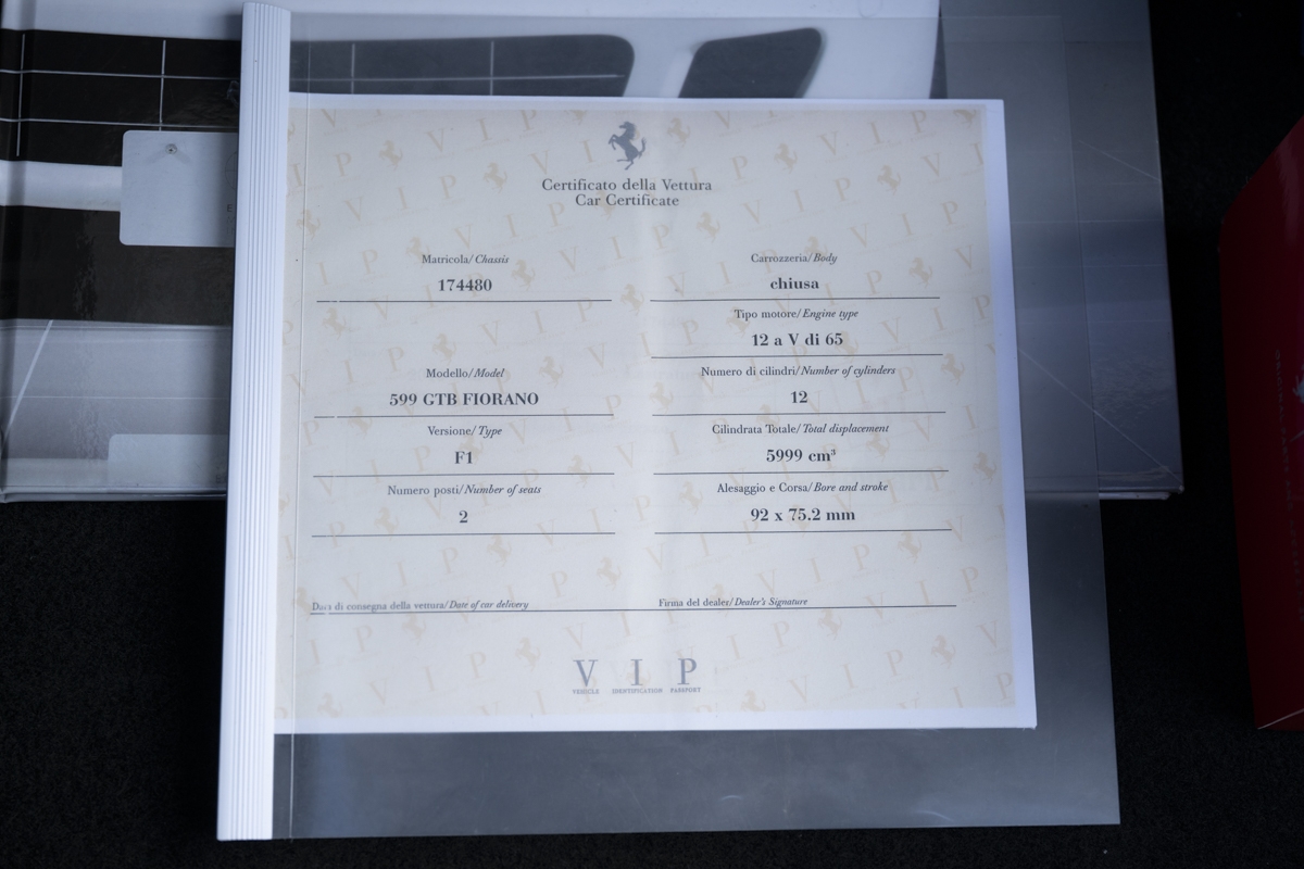 フェラーリが発行する、Vehicle Identification Passportも付属されているのは、当個体のファーストオーナー、オーダー主が、日本の有名なフェラーリコレクターによってオーダーされた個体を現オーナーが直接譲り受けたからこそ当時の書類も現存する由緒正しき車両となる。 - HGTEオプション装着車