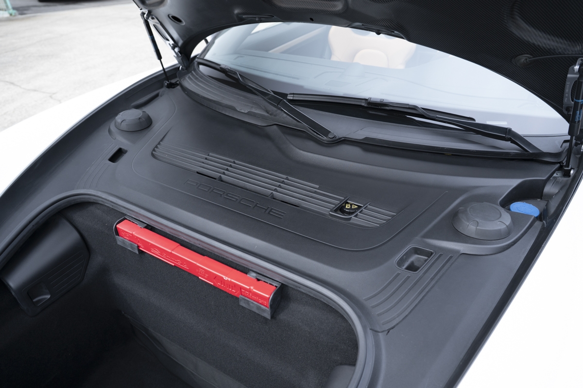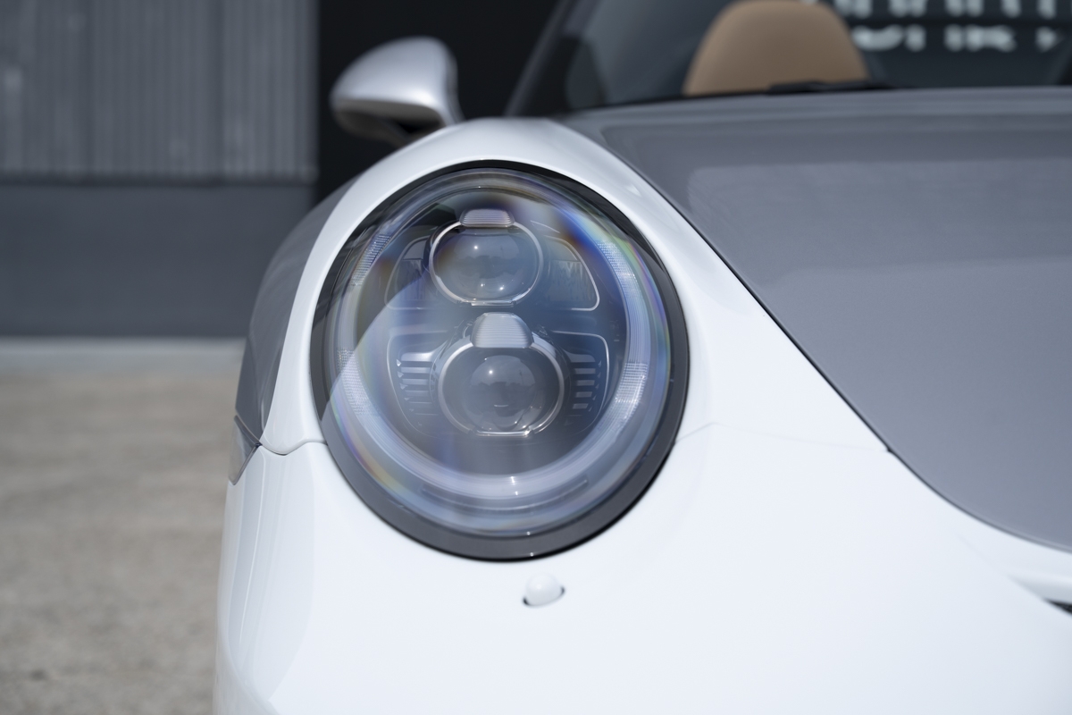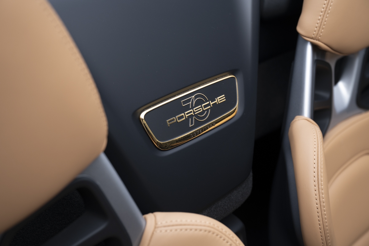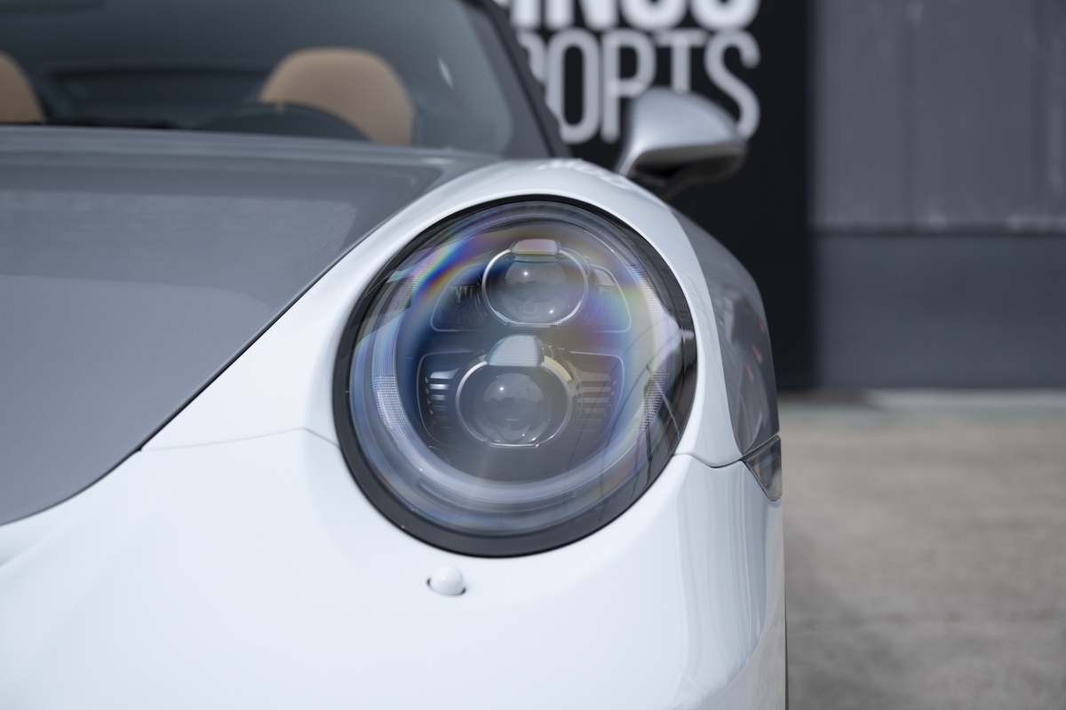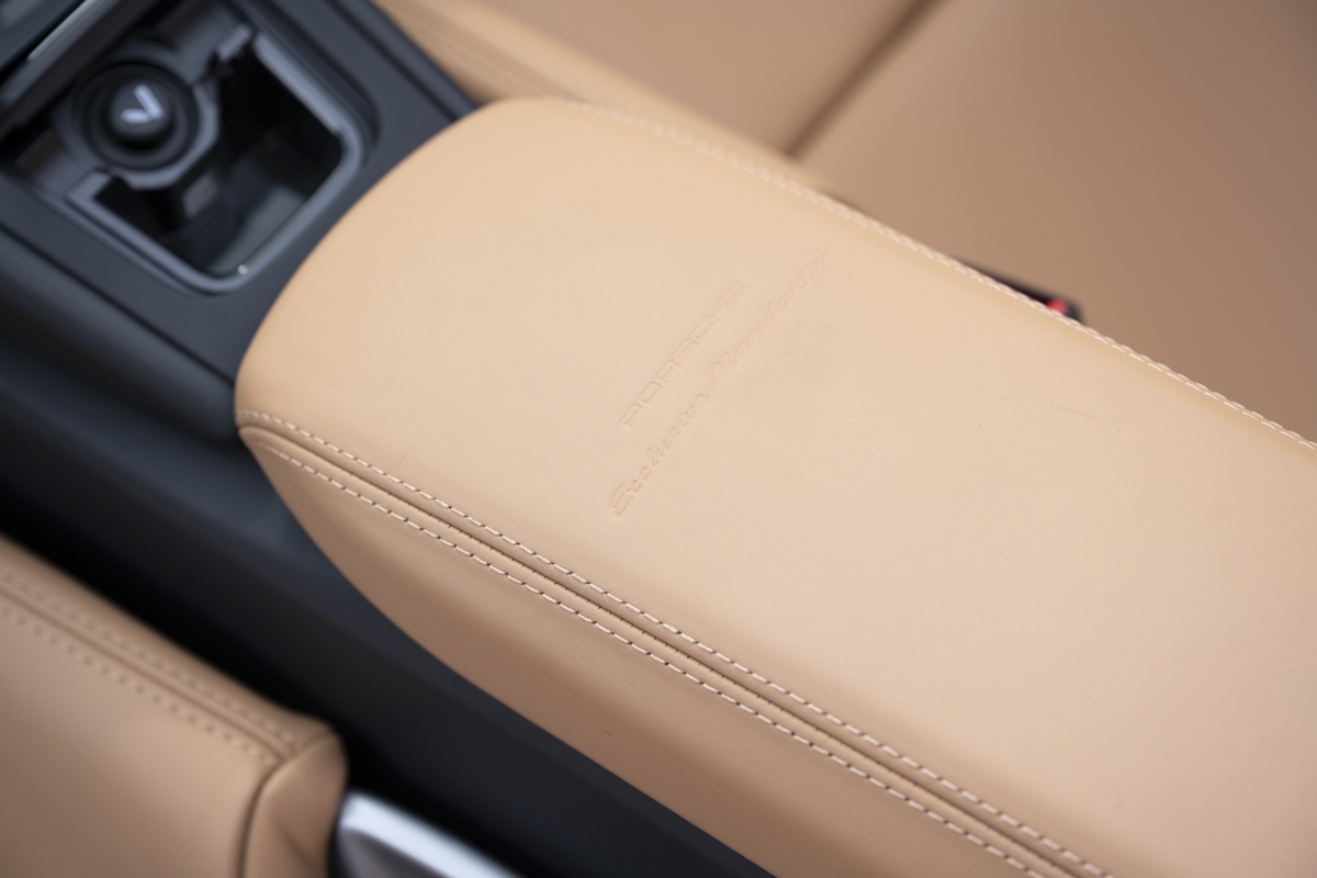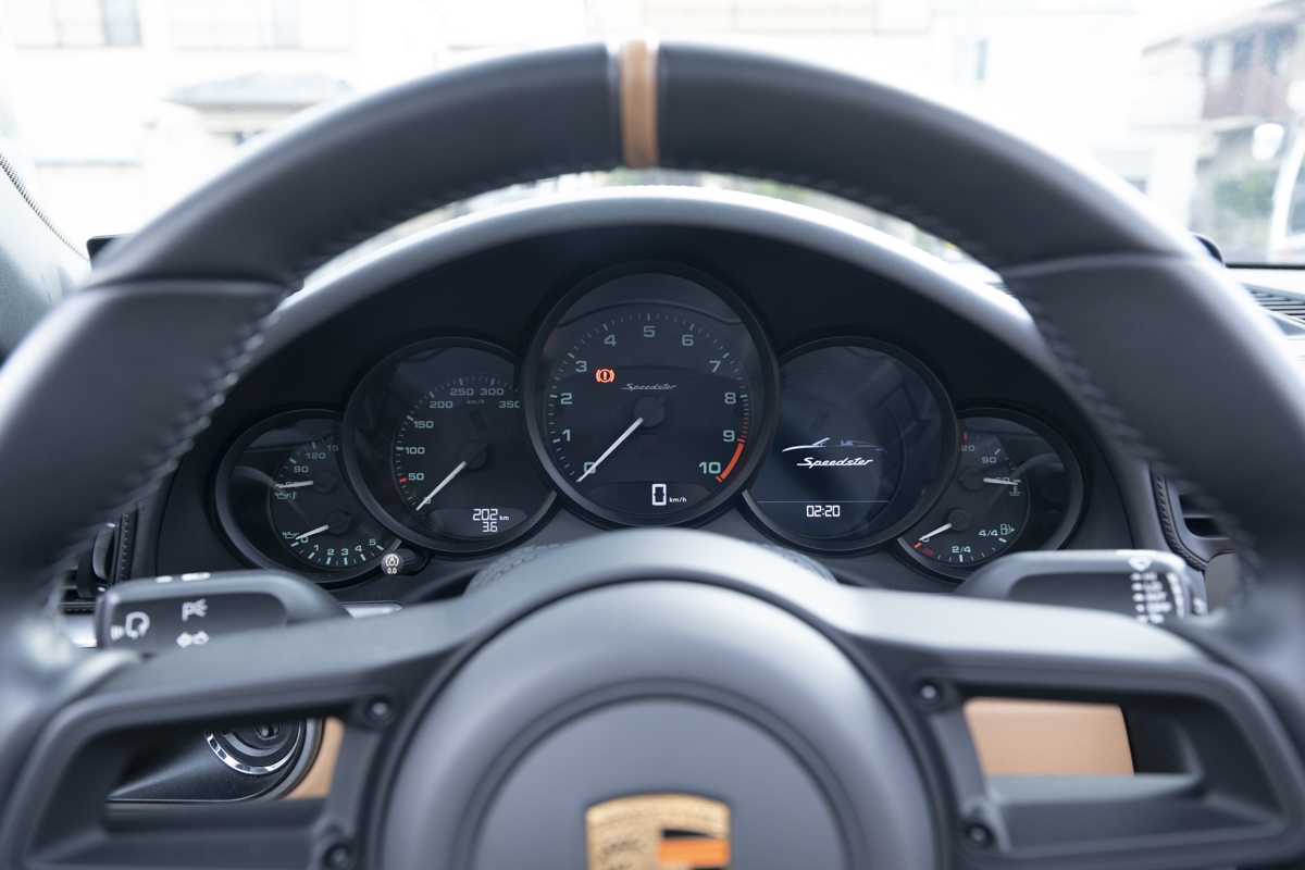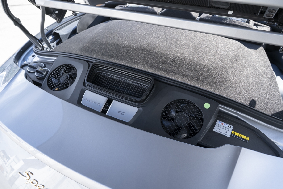 This example is specified with Porsche’s first Heritage Design Package. Finished in GT Silver Metallic, it features white-painted front detailing, wide B-pillars, and gold-plated “Speedster” script at the rear. Notably, the Heritage Design Package was available only through direct factory order in Germany.