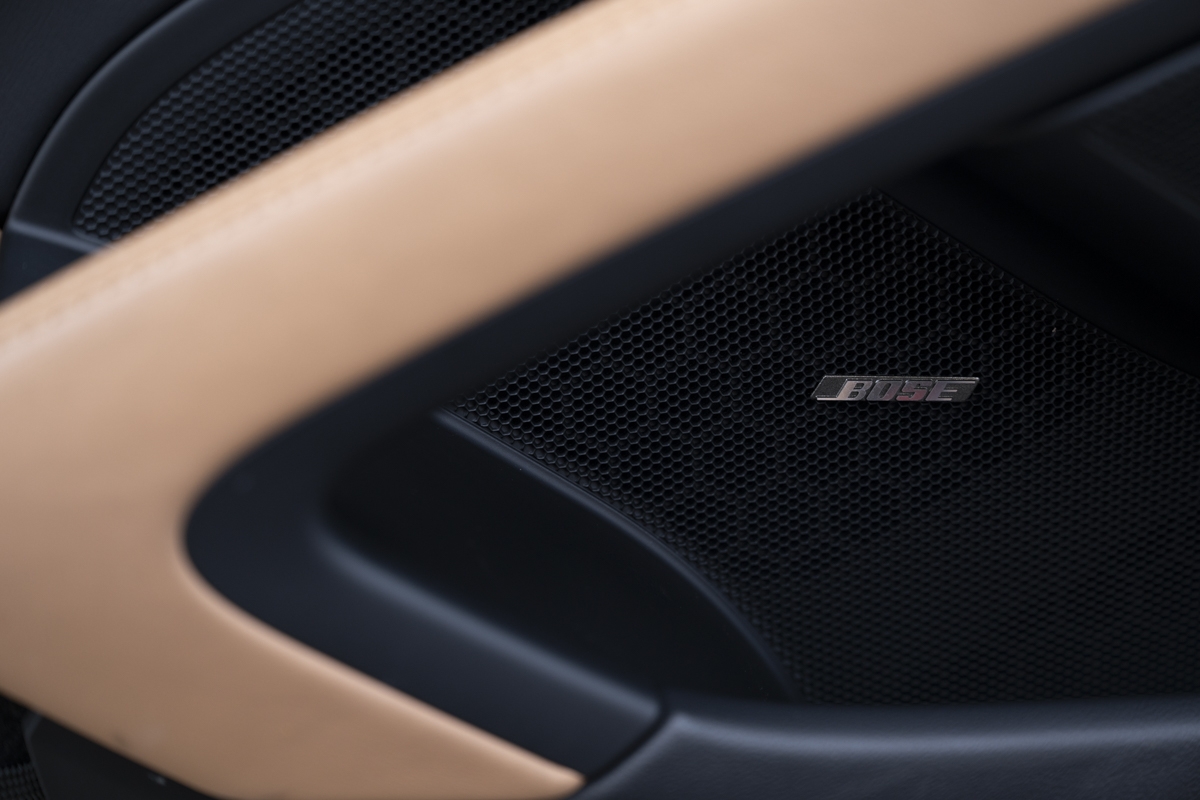 The interior is trimmed in a two-tone Cognac and Black leather combination. Even the carbon bucket seats are leather-appointed, harmonizing classic colorways with modern design.